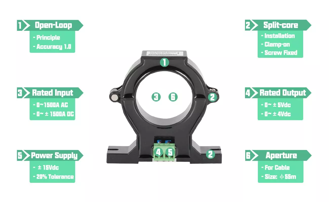 Rated input current:AC/DC 0~1500A