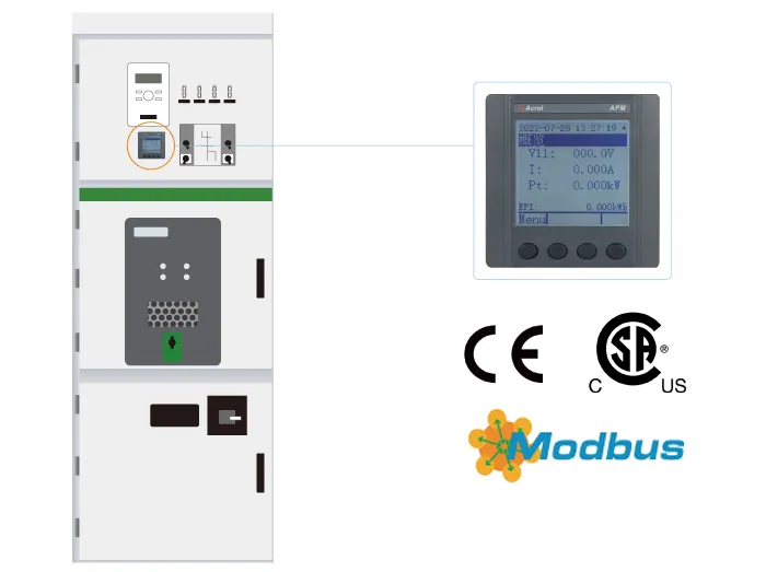 The APM521 network power meter is designed according to international IEC standards and features comprehensive electrical metering, energy statistics, power quality analysis, event logging, and network communication capabilities. It is primarily used for comprehensive power quality monitoring in electrical networks. This series of meters is equipped with DI/DO and AO modules, offering a wide range of functions that enable flexible implementation of comprehensive electrical metering and switch state monitoring in electrical circuits.