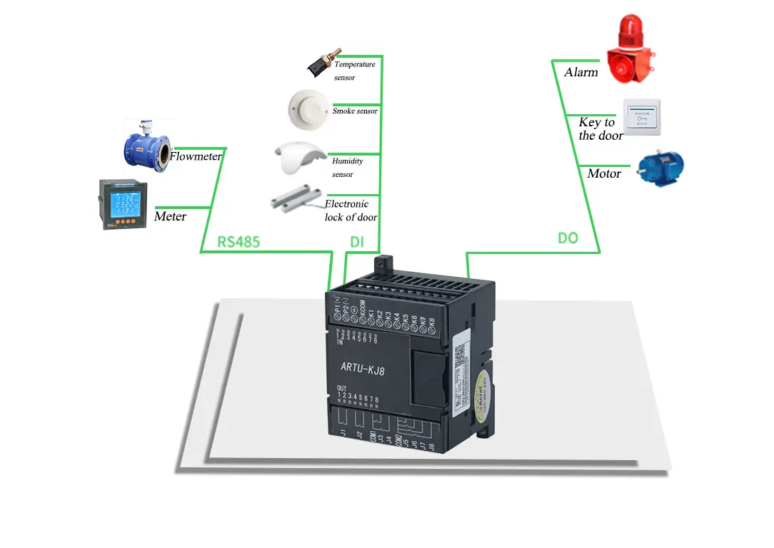 The Acrel ARTU-KJ8 remote communication and control unit is specifically designed for acquiring switching values and remote relay output in applications such as intelligent distribution and industrial automation. It enables data exchange via communication and a higher-level computer monitoring system.