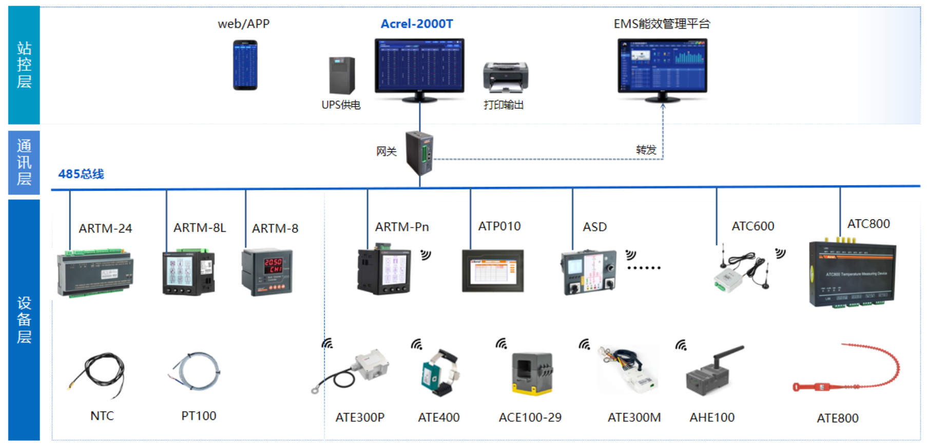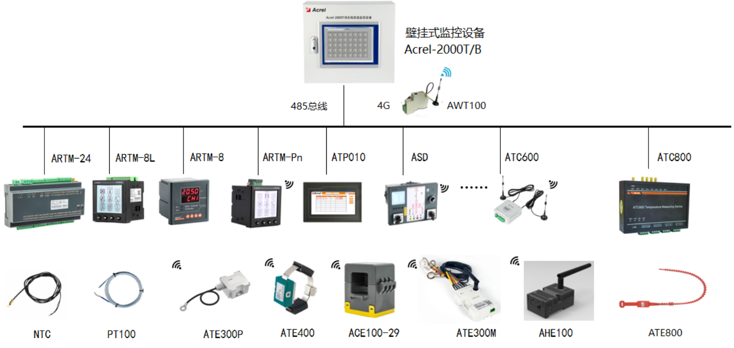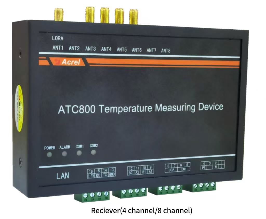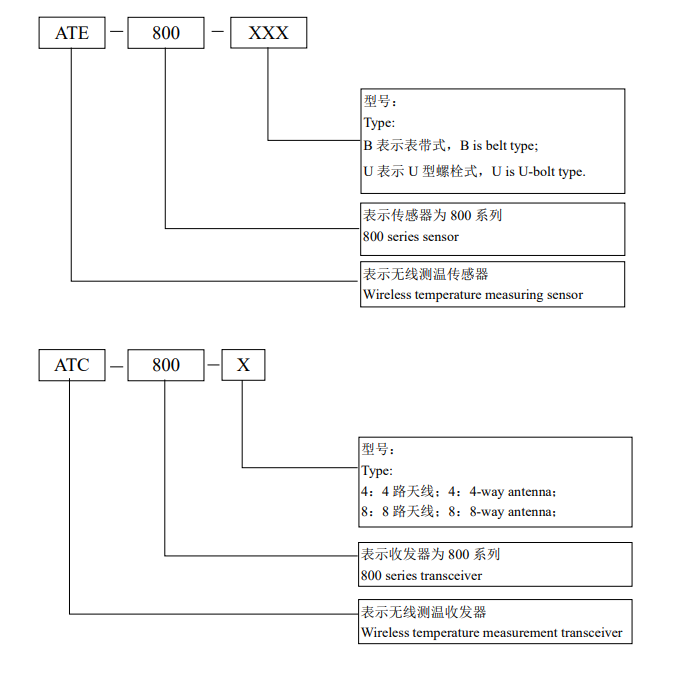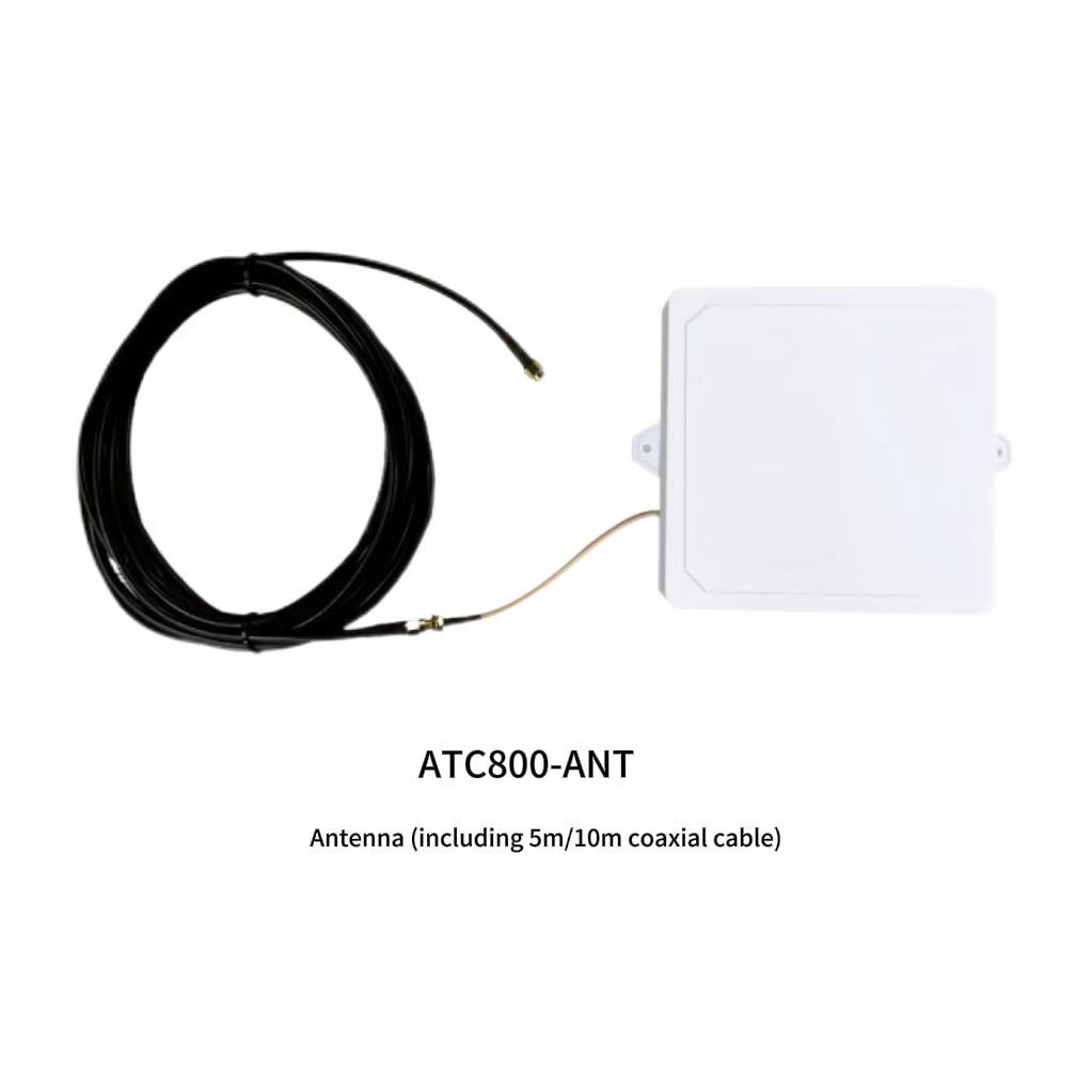 The ATE800 series products consist of a receiver, an antenna, and a sensor. The ATC800 receiver transmits RFID radio signals via the antenna to the ATE800 wireless temperature sensor. Upon receiving the radio signal, the sensor activates its circuitry.