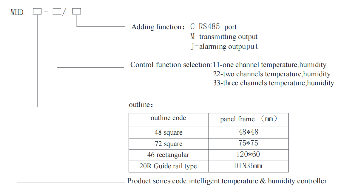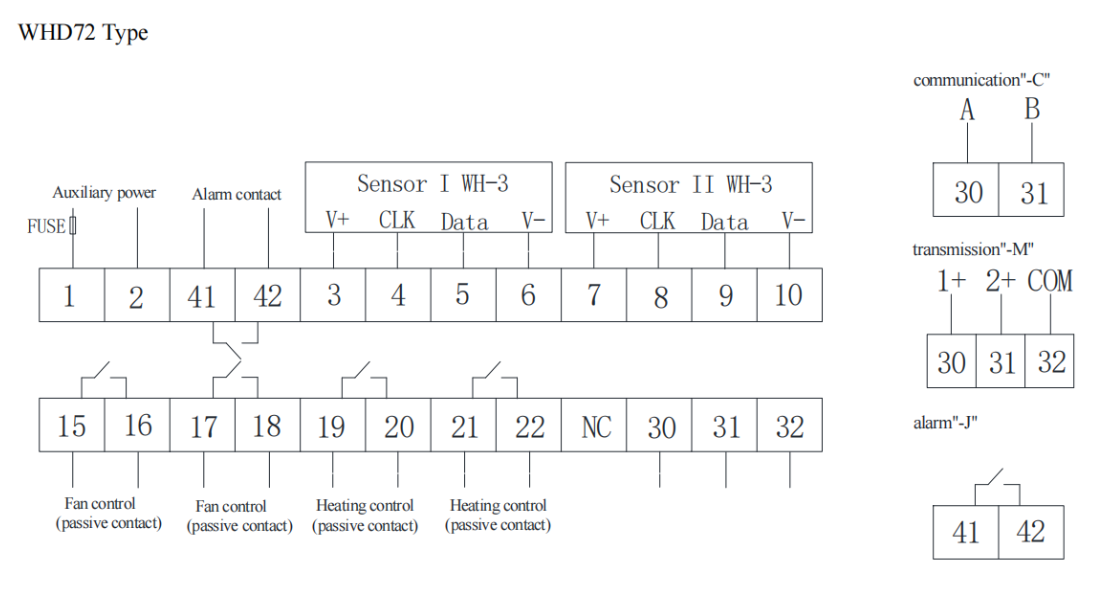 (1) The number of temperature, humidity or temperature sensors to be connected to WHD48, WHD72, WHD20R and WHD46 is 1, 2 or 3 respectively.
