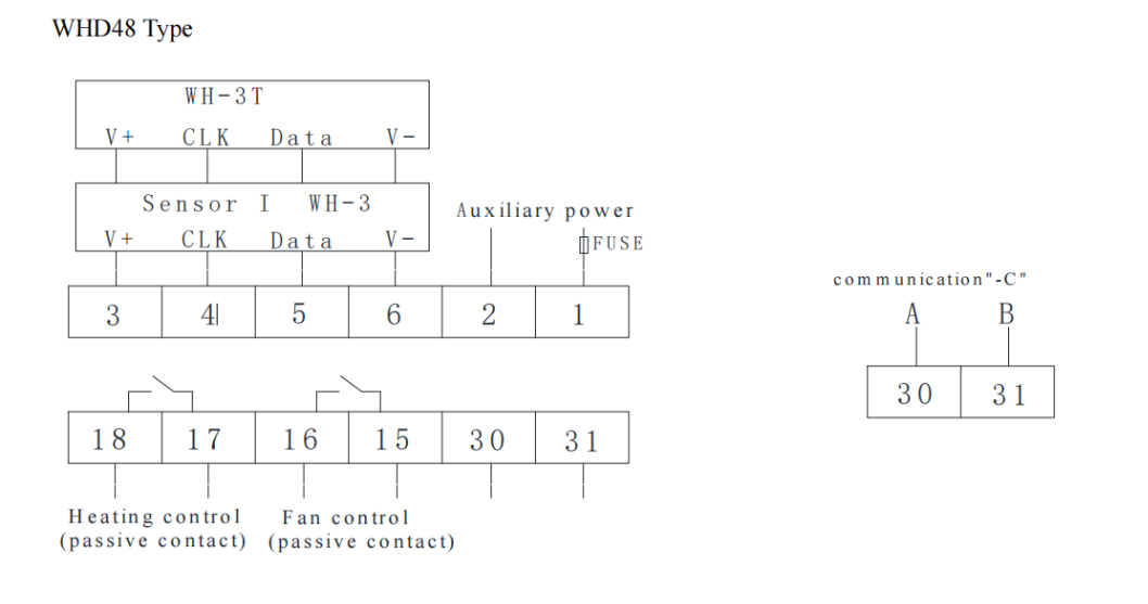 (1) The number of temperature, humidity or temperature sensors to be connected to WHD48, WHD72, WHD20R and WHD46 is 1, 2 or 3 respectively.