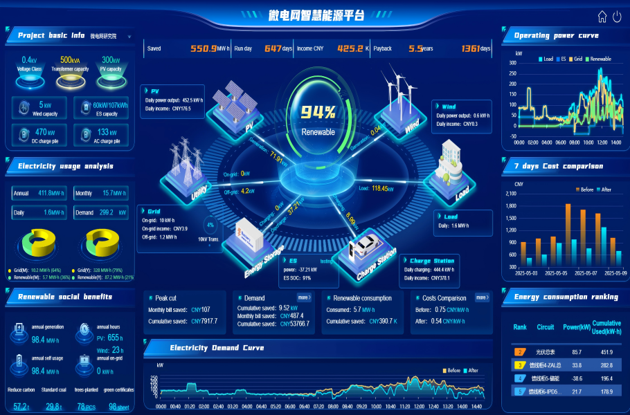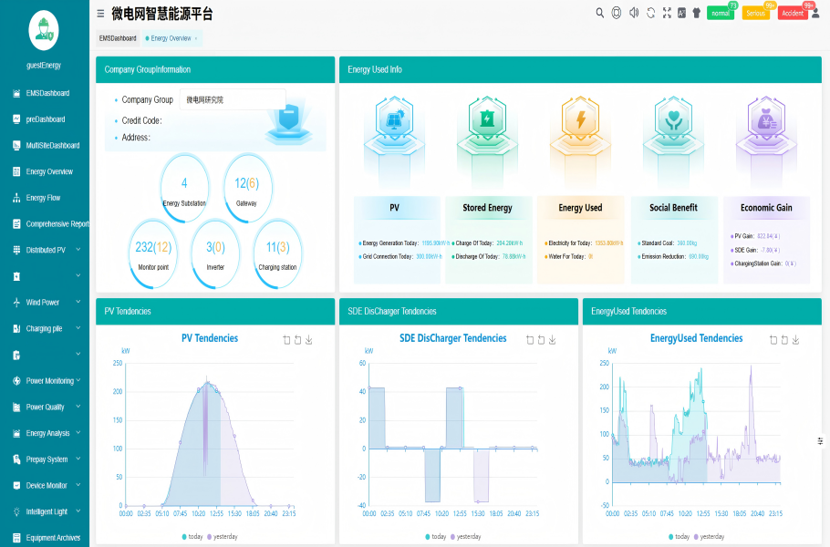 Es ermöglicht die Erfassung, Überwachung und Visualisierung von Daten wie Mikronetz-Photovoltaik, Windkraft, Energiespeicherung, Last, Ladesäulen und Umgebung sowie Funktionen wie Alarm bei ungewöhnlichen Ereignissen und Umsatzstatistiken.